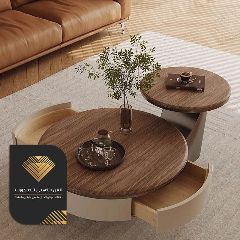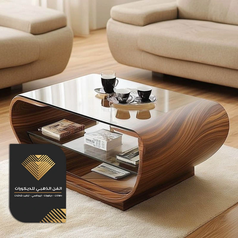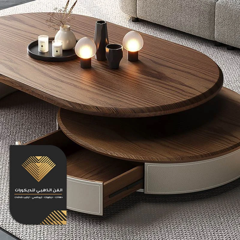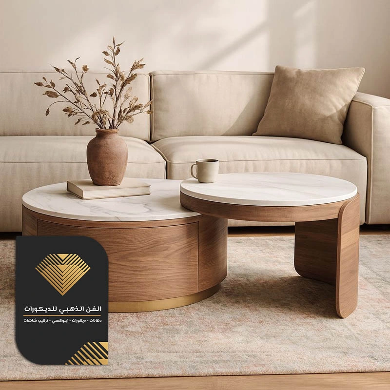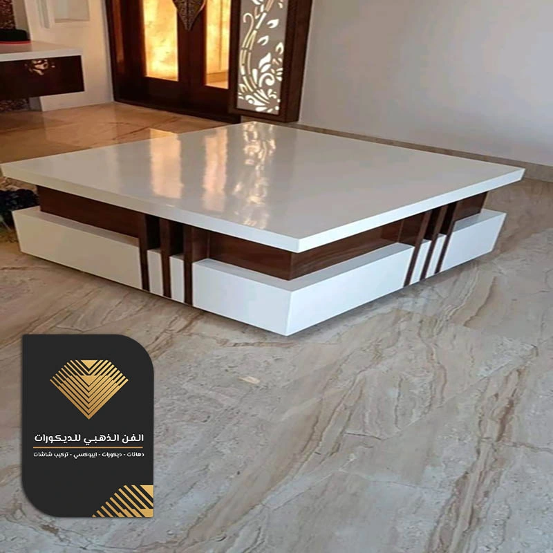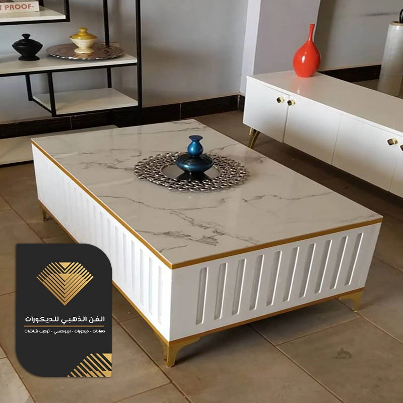 شرح: يتم تحديد نوع الخشب أو المعدن أو الرخام بما يناسب الاستخدام اليومي ويضمن تحمل الطاولة للضغط والرطوبة مع الحفاظ على شكلها الأنيق لفترة طويلة.