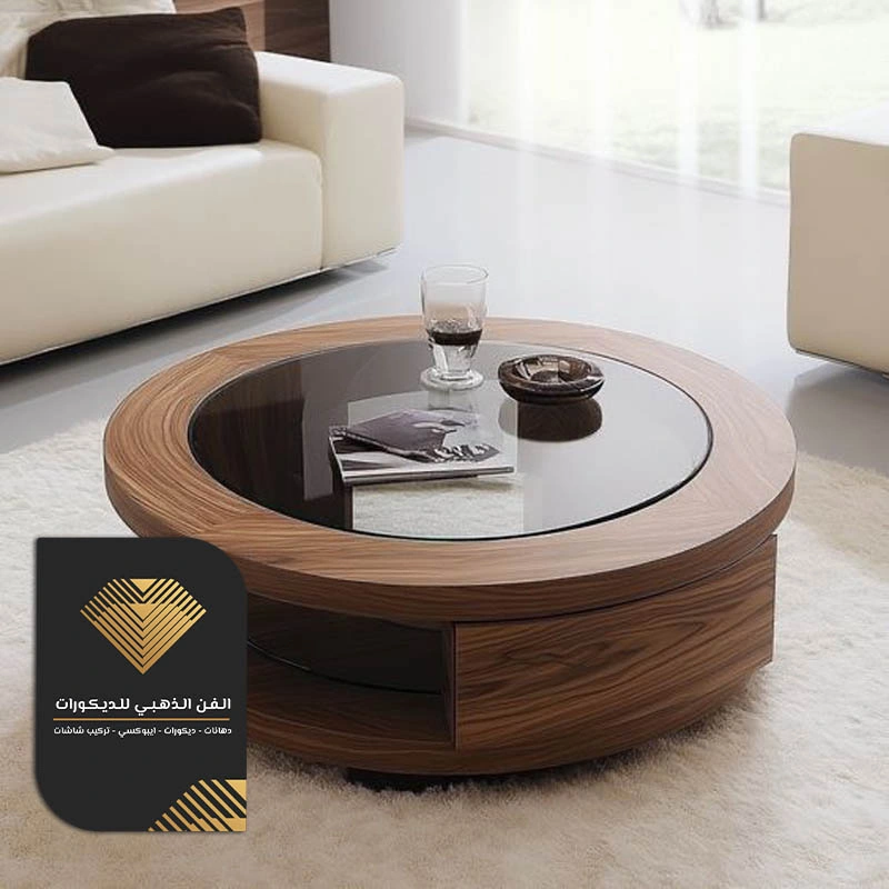 شرح: يتم اختيار شكل الطاولة بناءً على احتياج العميل والمساحة المتاحة مع مراعاة التناسق بين الأثاث والألوان لتحقيق مظهر متكامل داخل المكان.